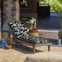 The Arden Selections Outdoor Chaise Cushion adds an element of relaxation and fashion to your outdoor chaise lounge, so you can relax in a space and style that is all your own. This cushion measures 21″ W x 72″ L x 2.5″ H and has 4 sets of ties, so it can fit a variety of chaise lounge styles. Our EverTru® Printed Polyester outdoor fabric is fade resistant and offers easy cleaning with just soap and water. Inside this outdoor cushion is patented 100% EverLuxe polyester fiberfill to help it retain shape and provide long-lasting comfort during outdoor use. Fibers within are oriented in a vertical position, which provides structure and springing replacement patio cushions. This outdoor cushion is UV treated and is intended for use on your patio or deck; however, we recommend bringing it indoors when it rains or when not in use to preserve its lifespan and keep it looking beautiful.