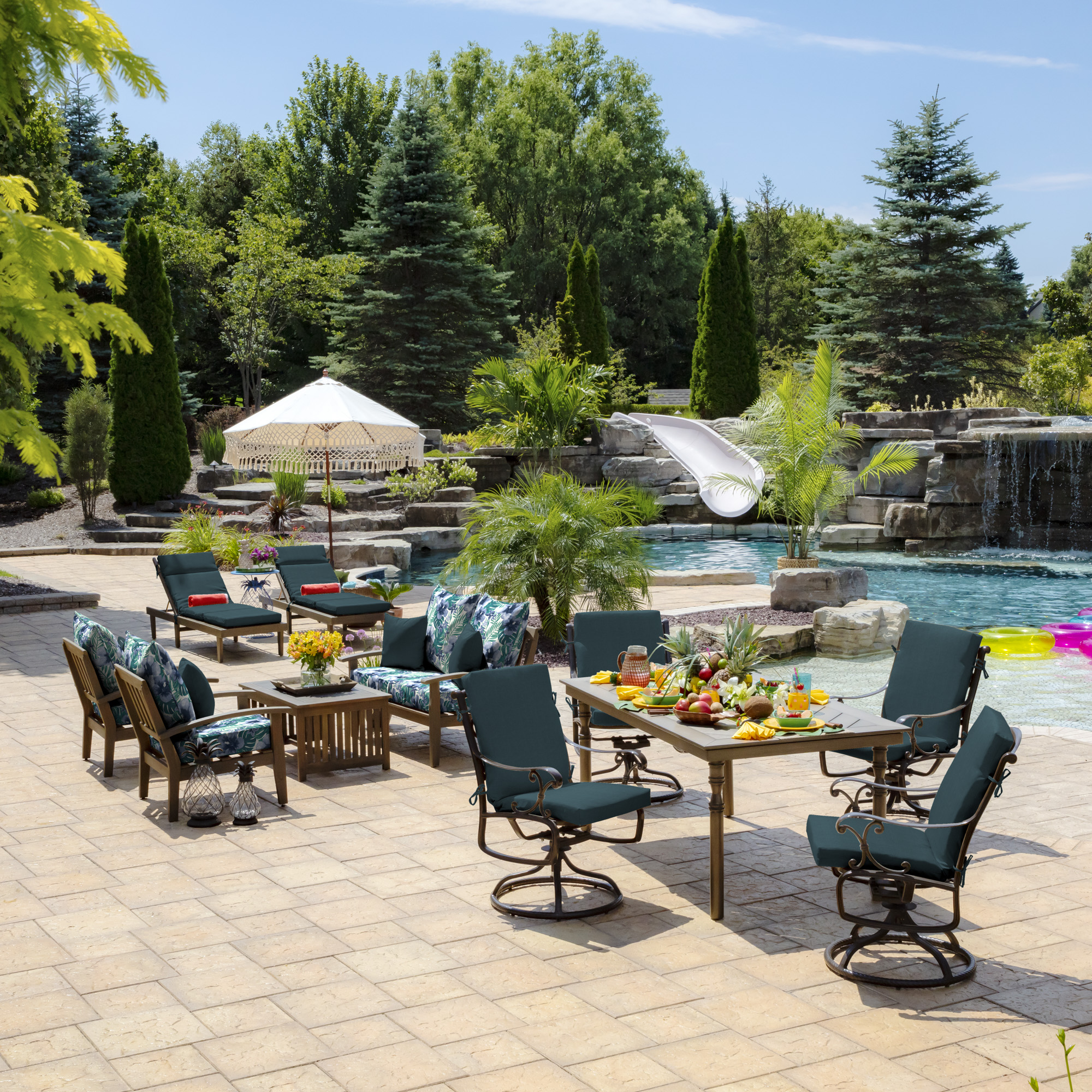 The durable, weather-resistant polyester fabric ensures vibrant colors through the season and offers easy cleaning with just soap and water. Inside these outdoor cushion is patented 100% EverLuxe polyester fiber fill to help them retain shape and provide long-lasting comfort during outdoor use. Fibers within are oriented in a vertical position, which provides structure and spring in replacement patio cushions.