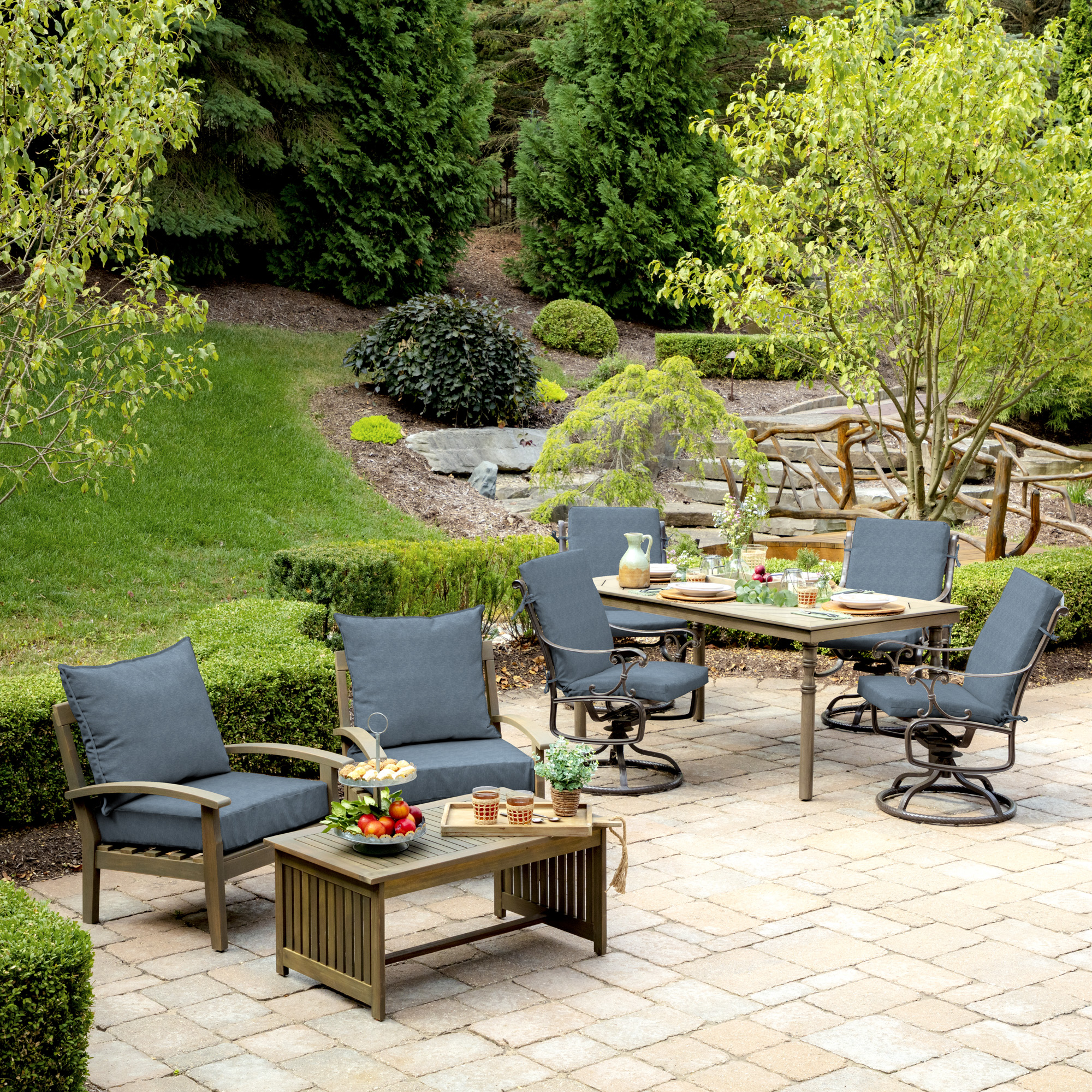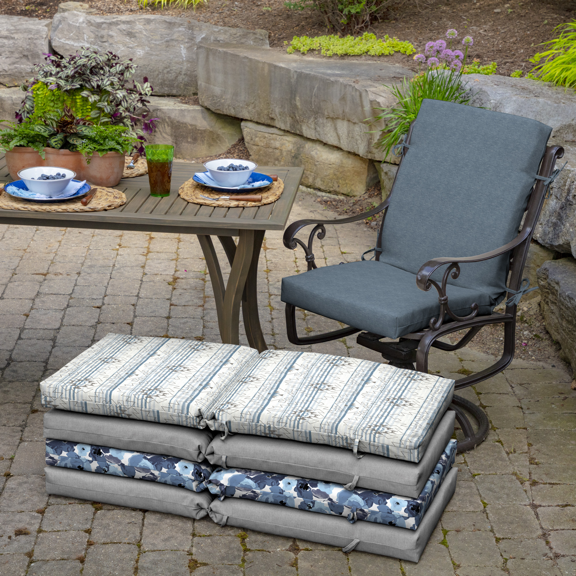 Bring style and comfort to your outdoor living area with this High Back Dining Seat Cushion. This high back patio cushion is 44″ inches long and 20″ inches wide. It is 3.5″ inches thick and has four sets of ties to secure it to the chair. Our EverTru® Printed Polyester outdoor fabric is fade resistant and offers easy cleaning with just soap and water. Inside this outdoor cushion is patented 100% EverLuxe polyester fiberfill to help it retain shape and provide long-lasting comfort during outdoor use. Fibers within are oriented in a vertical position, which provides structure and springing replacement patio cushions. This outdoor cushion is UV treated and is intended for use on your patio or deck; however, we recommend bringing it indoors when it rains or when not in use to preserve its lifespan and keep it looking beautiful.