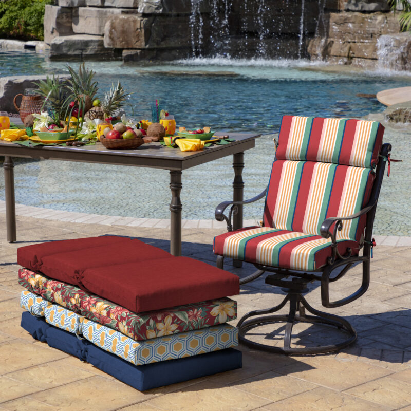 The durable, weather-resistant polyester fabric ensures vibrant colors through the season and offers easy cleaning with just soap and water. Inside these outdoor cushion is patented 100% EverLuxe polyester fiber fill to help them retain shape and provide long-lasting comfort during outdoor use. Fibers within are oriented in a vertical position, which provides structure and spring in replacement patio cushions.