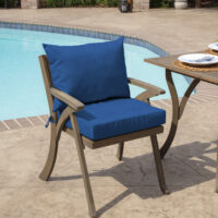 The Arden Selections Outdoor Dining Seat Cushion Set is a great way to update your outdoor dining furniture with beautiful patterns and comfort without buying a whole new furniture set! This set comes with a large pillow back and dining seat bottom. The pillow back measures 23″ W x 17″ L x 5″ H, and the bottom cushion measures 21″ W x 21″ L x 4″ H fitting most standard dining chairs. Our 100% EverTru®® Acrylic outdoor fabric is fade resistant and offers easy cleaning with just soap and water. Inside this outdoor cushion is patented 100% EverLuxe polyester fiberfill to help it retain shape and provide long-lasting comfort during outdoor use. Fibers within are oriented in a vertical position, which provides structure and springing replacement patio cushions. This outdoor cushion is UV treated and is intended for use on your patio or deck; however, we recommend bringing it indoors when it rains or when not in use to preserve its lifespan and keep it looking beautiful.
