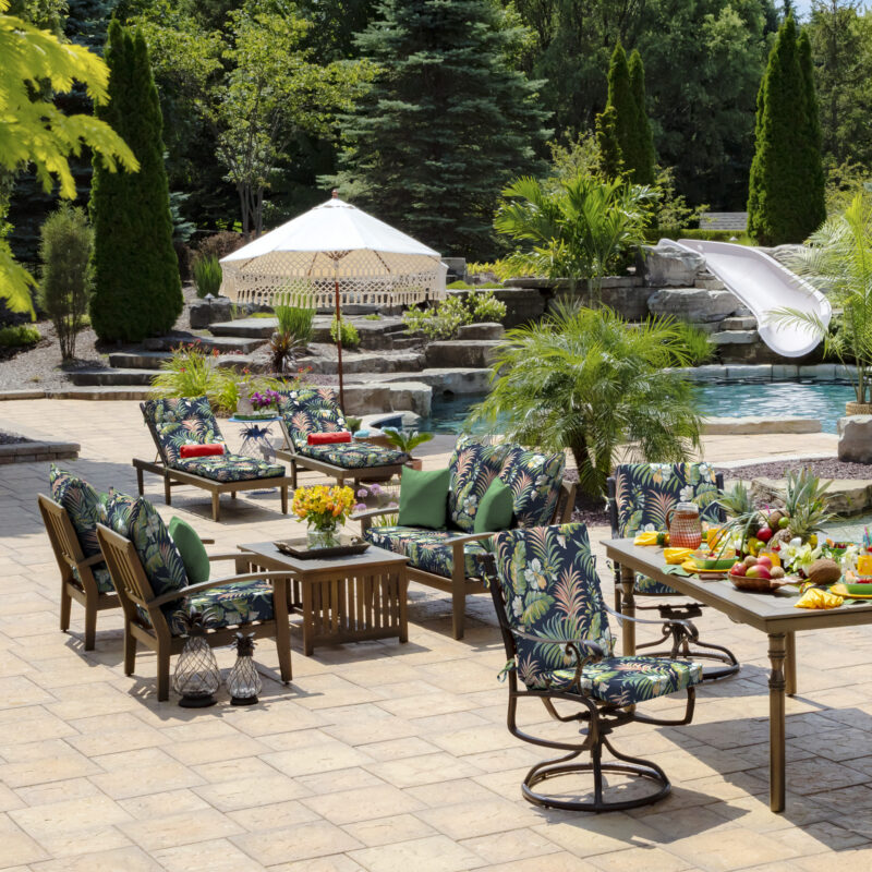 • Resilient polyester outdoor fabric has been treated with enhanced UV protection to resist fading for 1+ years