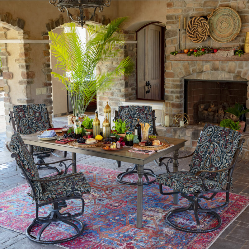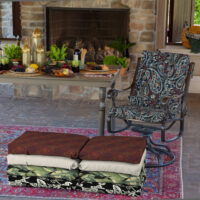 Bring style and comfort to your outdoor living area with this High Back Dining Seat Cushion. This high back patio cushion is 44″ inches long and 20″ inches wide. It is 3.5″ inches thick and has four sets of ties to secure it to the chair. Our EverTru® Printed Polyester outdoor fabric is fade resistant and offers easy cleaning with just soap and water. Inside this outdoor cushion is patented 100% EverLuxe polyester fiberfill to help it retain shape and provide long-lasting comfort during outdoor use. Fibers within are oriented in a vertical position, which provides structure and springing replacement patio cushions. This outdoor cushion is UV treated and is intended for use on your patio or deck; however, we recommend bringing it indoors when it rains or when not in use to preserve its lifespan and keep it looking beautiful.