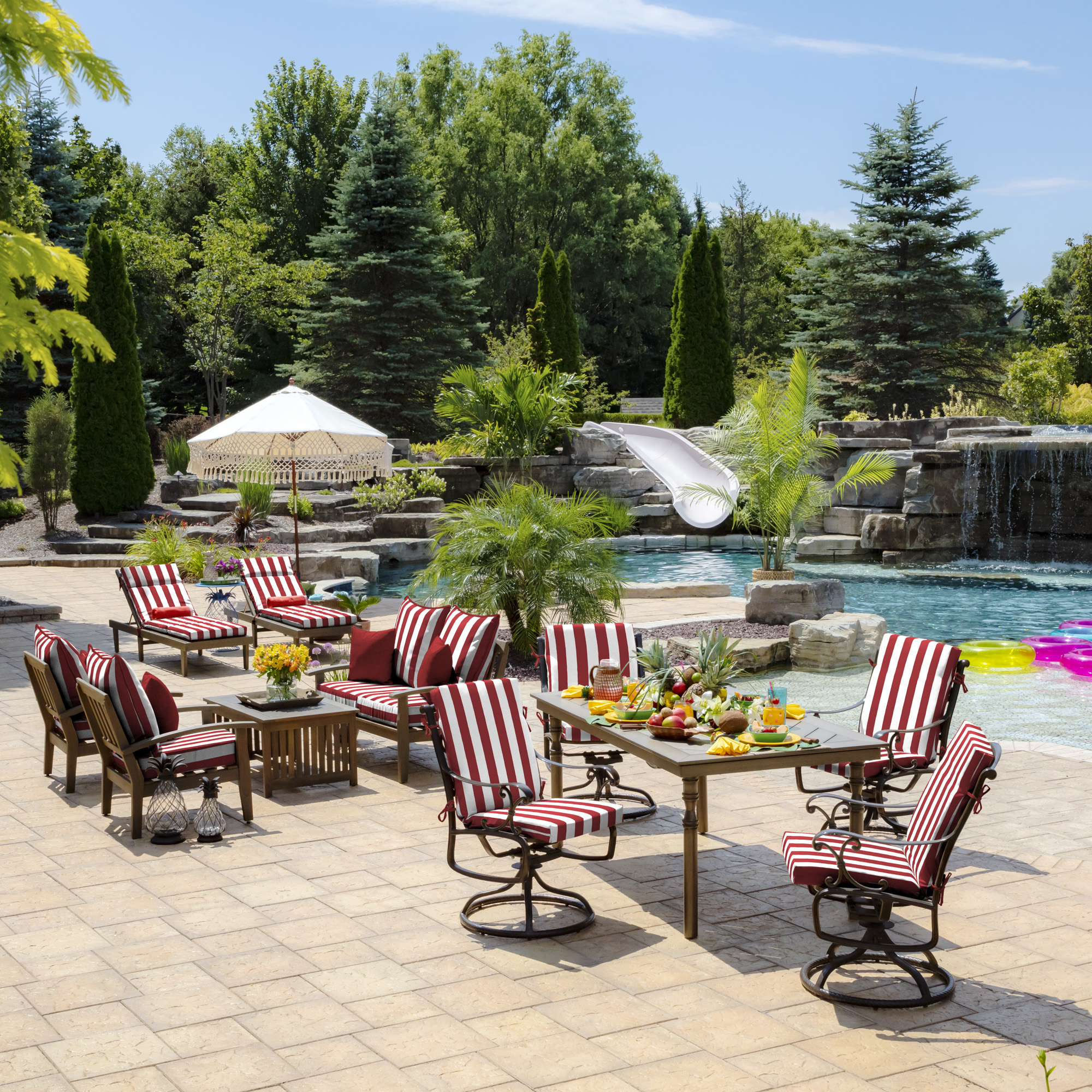 Bring style and comfort to your outdoor living area with this High Back Dining Seat Cushion. This high back patio cushion is 44″ inches long and 20″ inches wide. It is 3.5″ inches thick and has four sets of ties to secure it to the chair. Our EverTru® Printed Polyester outdoor fabric is fade resistant and offers easy cleaning with just soap and water. Inside this outdoor cushion is patented 100% EverLuxe polyester fiberfill to help it retain shape and provide long-lasting comfort during outdoor use. Fibers within are oriented in a vertical position, which provides structure and springing replacement patio cushions. This outdoor cushion is UV treated and is intended for use on your patio or deck; however, we recommend bringing it indoors when it rains or when not in use to preserve its lifespan and keep it looking beautiful.