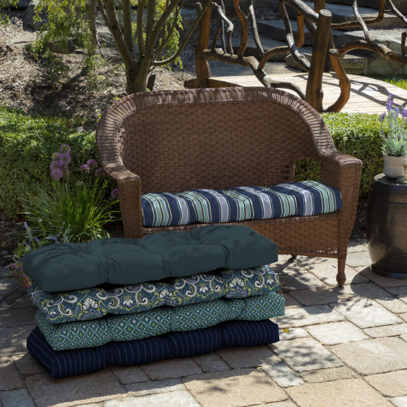 The Arden Selections Outdoor Wicker Settee Cushion will help put the finishing touches on your wicker settee or bench! This settee cushion features 6 tufts and is filled with durable polyester blowfill, which gives it a luxuriously full look and also allows you to fluff it up at any time. The cushion measure 41.5″W x 18″L x 5″T and has two sets of ties, allowing it to fit a variety of outdoor wicker settees and benches. Pair this cushion with Arden Selections wicker seat cushions in matching or coordinating colors to pull your entire wicker furniture set together.