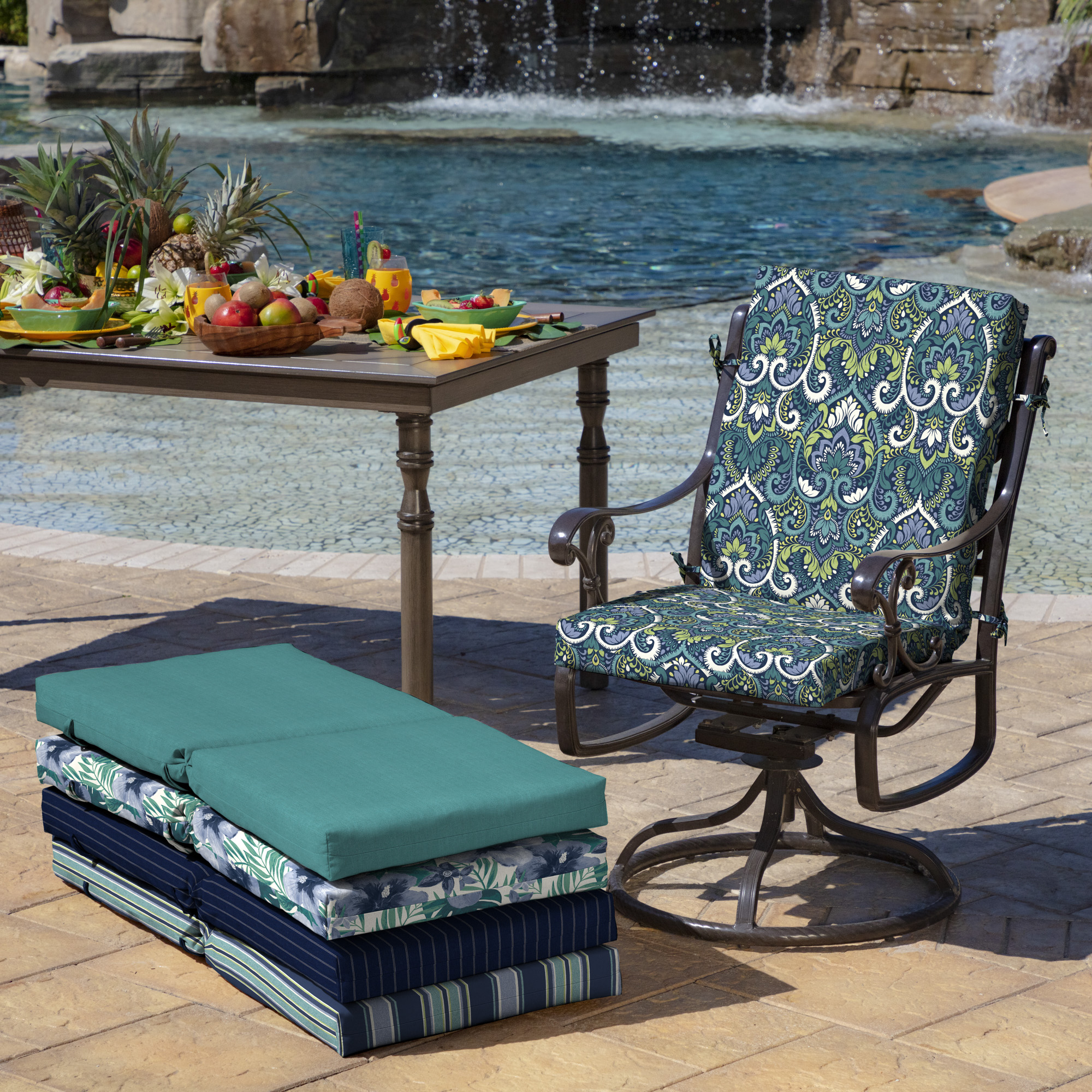 The Arden Selections Outdoor Chair Cushion is a simple way to add a personalized touch of style to any Outdoor living space. This chair cushion measures 20″W x 44″L x 3.5″T and has 4 sets of ties, making it a versatile option for a variety of outdoor dining and stacking chairs. Available in a wide array of colors and patterns, you can buy all matching cushions or mix and match coordinating colors for a look that is unique to you!