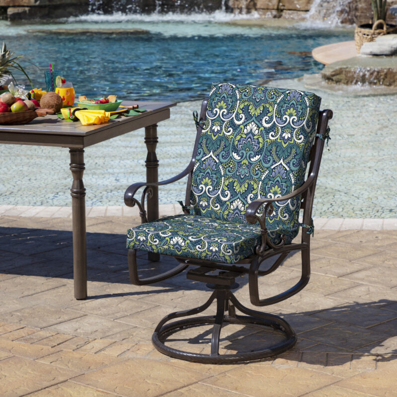 The durable, weather-resistant polyester fabric ensures vibrant colors through the season and offers easy cleaning with just soap and water. Inside this outdoor cushion is patented 100% EverLuxe polyester fiber fill to help it retain shape and provide long-lasting comfort during outdoor use. Fibers within are oriented in a vertical position, which provides structure and spring in replacement patio cushions.
