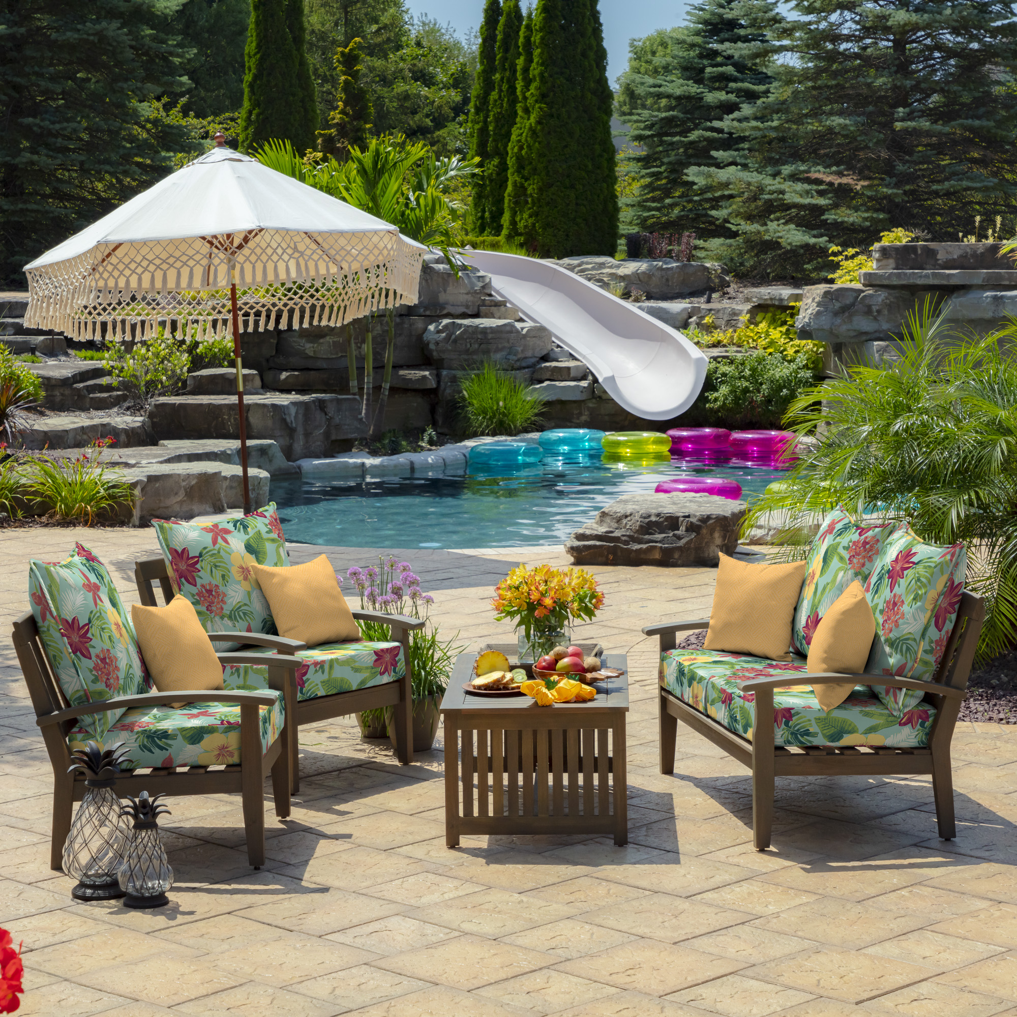 The durable, weather-resistant polyester fabric ensures vibrant colors through the season and offers easy cleaning with just soap and water. We use 100% polyester fill inside our outdoor pillows to help retain shape and maintain long-lasting comfort and support during outdoor use.